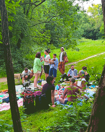 So we began creating gatherings that brought people together in unexpected ways: brunches around long tables in an abandoned pub, cocktail afternoons, queer cinema outings, DIY film screenings, recipe book potlucks, and more.